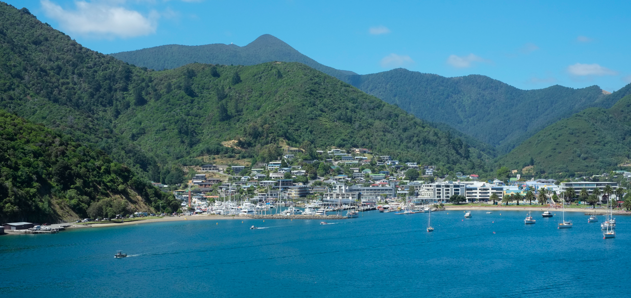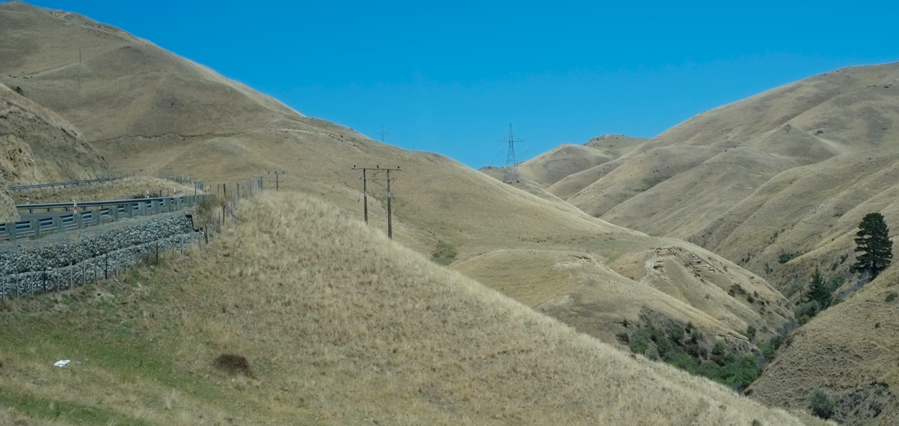 Am besten haben mir die rasierten Berge von Blenheim gefallen. In dieser Gegend (Marlborough) hatte man vor Jahren mit dem Weinbau in Neuseeland begonnen. Der Fahrer teilt ehrfurchtsvoll mit, es sei überhaupt die sonnenreichste Gegend in Neuseeland. Womit ich einen Grund geliefert bekomme später am Abend noch eine schöne Flasche Shiraz zu köpfen, obwohl ich ja eigentlich vor dem Lauf auf alles "Giftige" verzichten wollte.
