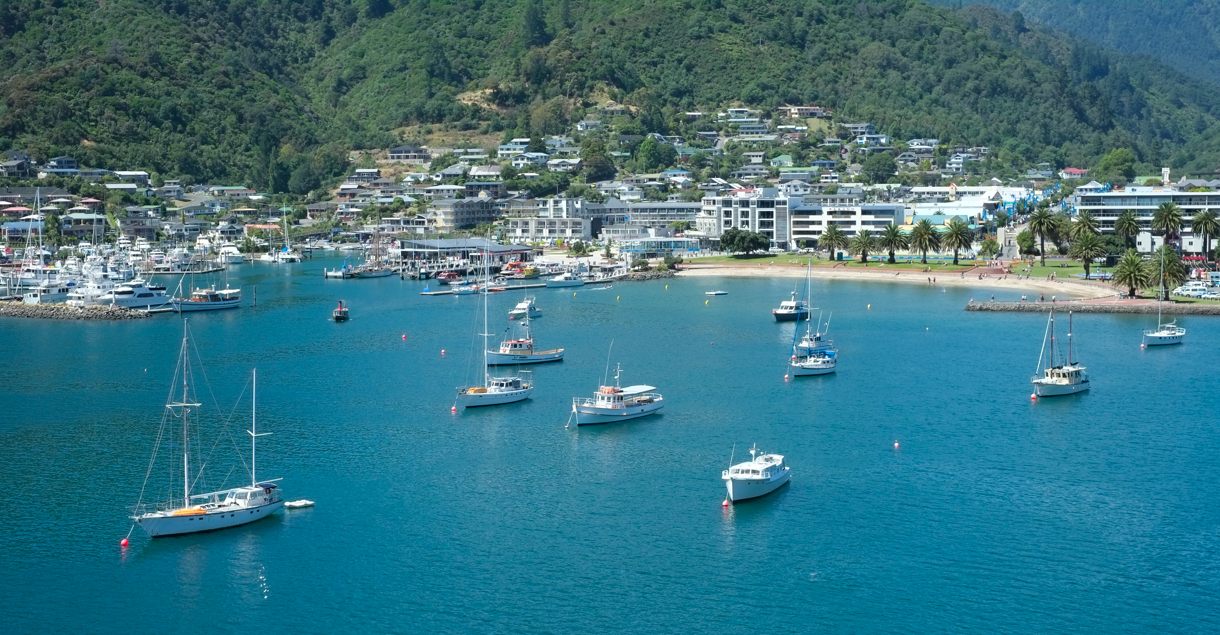 Aufbruch zum Lauf meines Lebens, in Hanmer Springs auf der Südinsel. Die Hand auf der Karte deutet auf das erste Zwischenziel, Picton. Es klingt verrückt, aber mit dem Flieger kostet die Reise mittlerweile ein Drittel. Ihr fahrt natürlich schön gemächlich mit der Fähre durch den „Queen Charlotte Sound“ und später mit dem Bus entlang der Westküste. Warum? Seht ihr gleich ...
