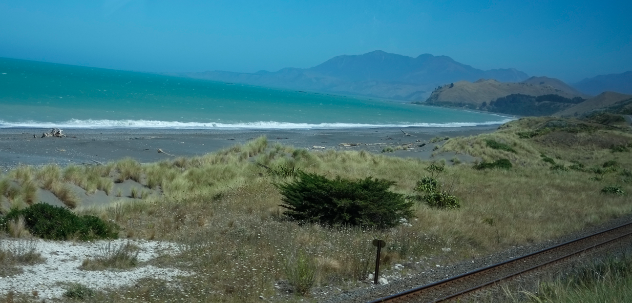 Es geht weiter an der Westküste, immer dicht am Meer entlang. Der Busfahrer schildert nun im Stile eines Flugkapitäns: „das Wetter in Christchurch ist heiter ...“ (es klingt immer zackig und souverän, das letzte Wort im Satz wird tonmässig stets nach oben gezogen). Weiter im Text geht es erst nach einer Gedächtnispause, es folgt Temperaturangabe und Zeitschätzungen bis zum Zielort. Das Interesse beim Publikum ist nicht sehr groß. Noch ein kleiner Pitstop in Kaikoura, dann direkt hinunter nach Christchurch.