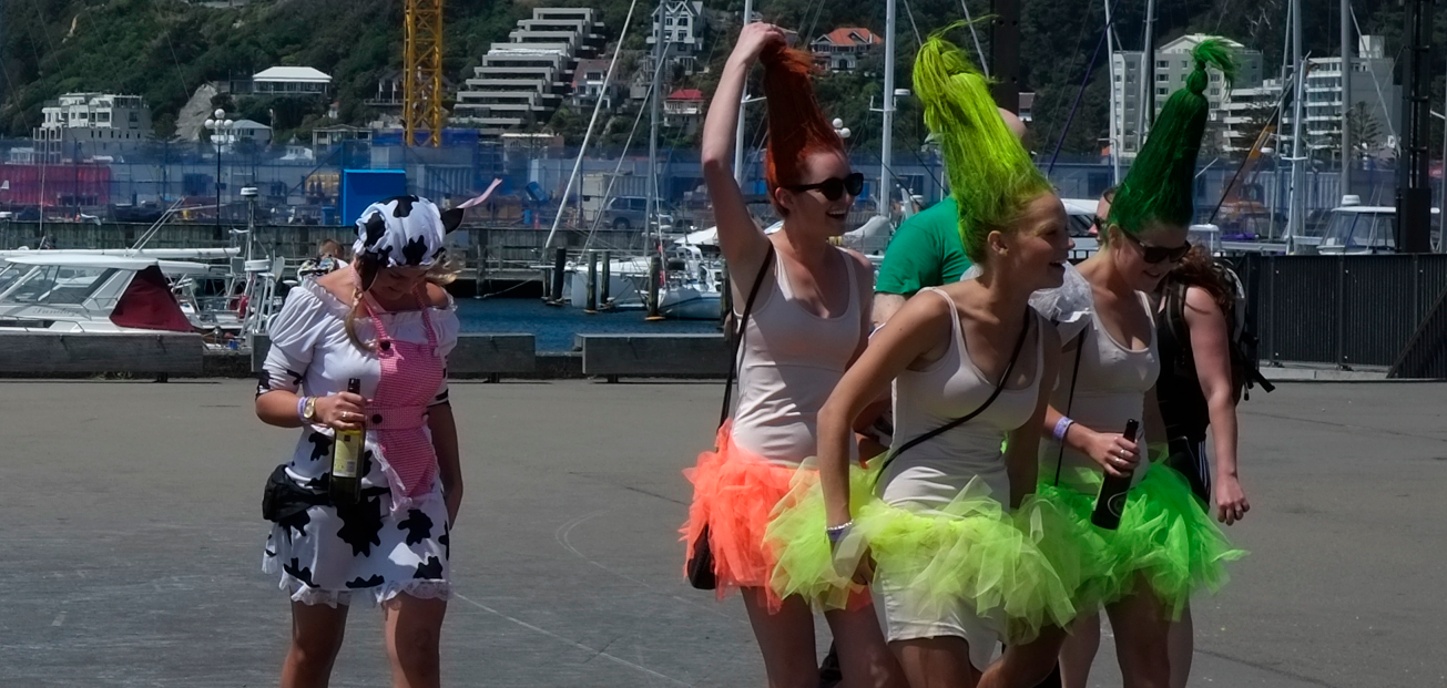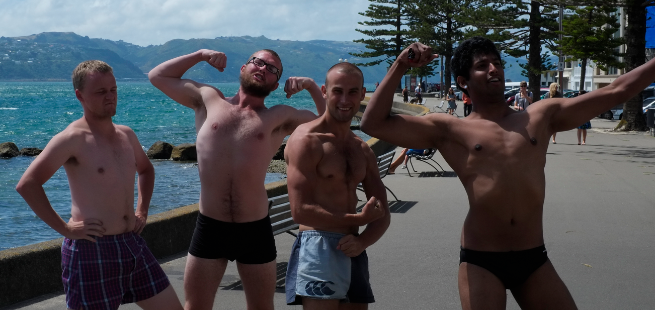 Wie bei den wind-gebürsteten Wäldern, überhaupt bestimmen die schrägen Typen das Gesicht von Wellington. Schaut es euch an in der Galerie, da findet ihr eine Serie über die Leute vom City-Beach (Oriental Bay).