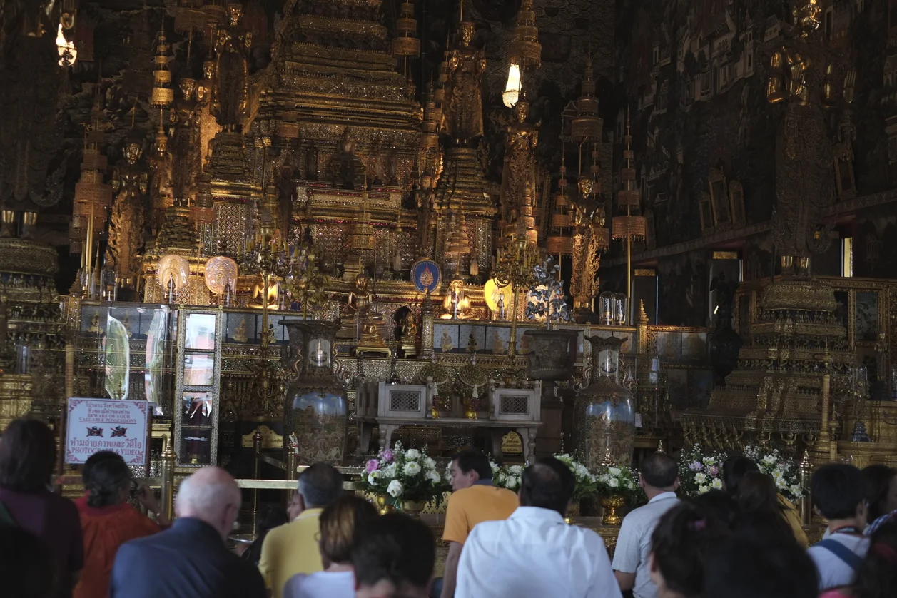 Wer shoppt in dieser Stadt, der betet auch. Mitten unter den schillernden Centern ist immer noch ein Platz für einen Schrein. Ihr seht den Erawan Schrein, bekannt und beliebt wegen der hübsch anzusehenden Tänzerinnen.