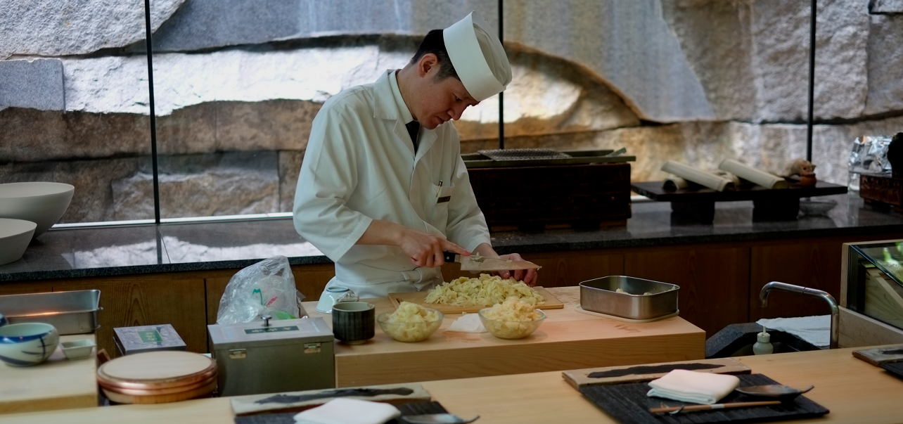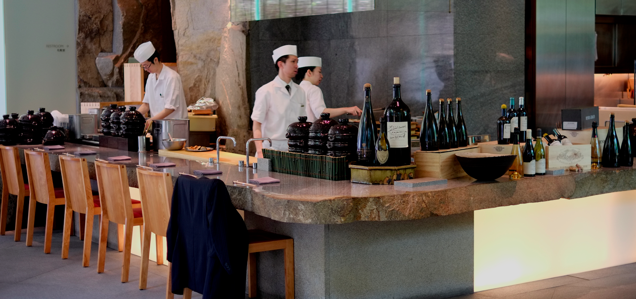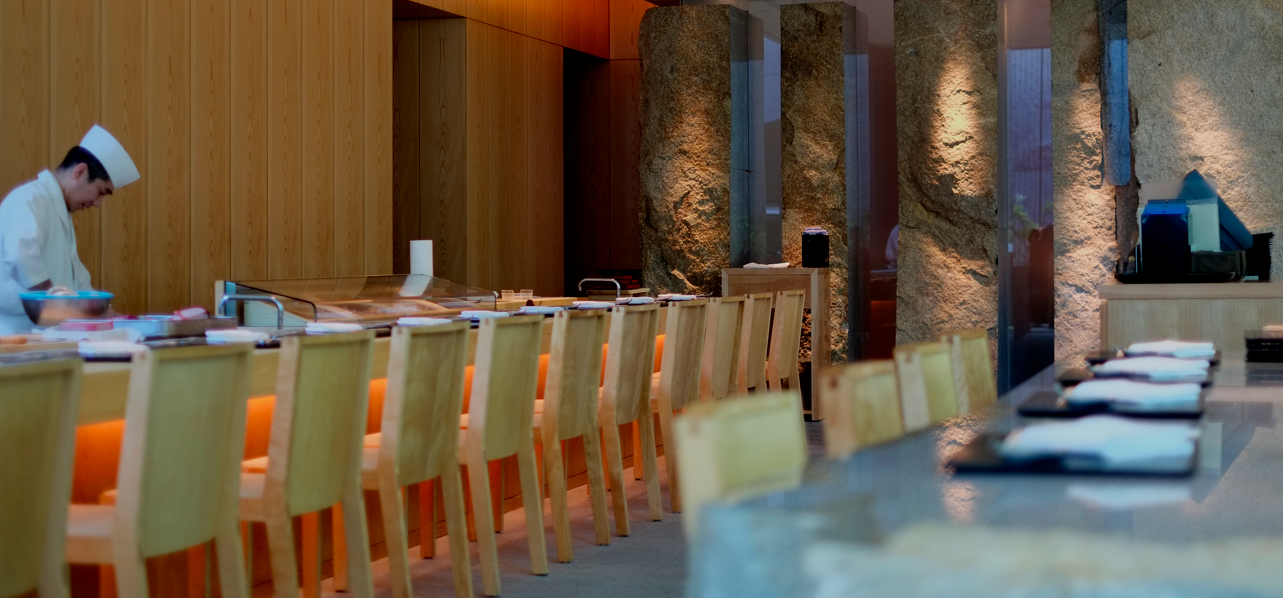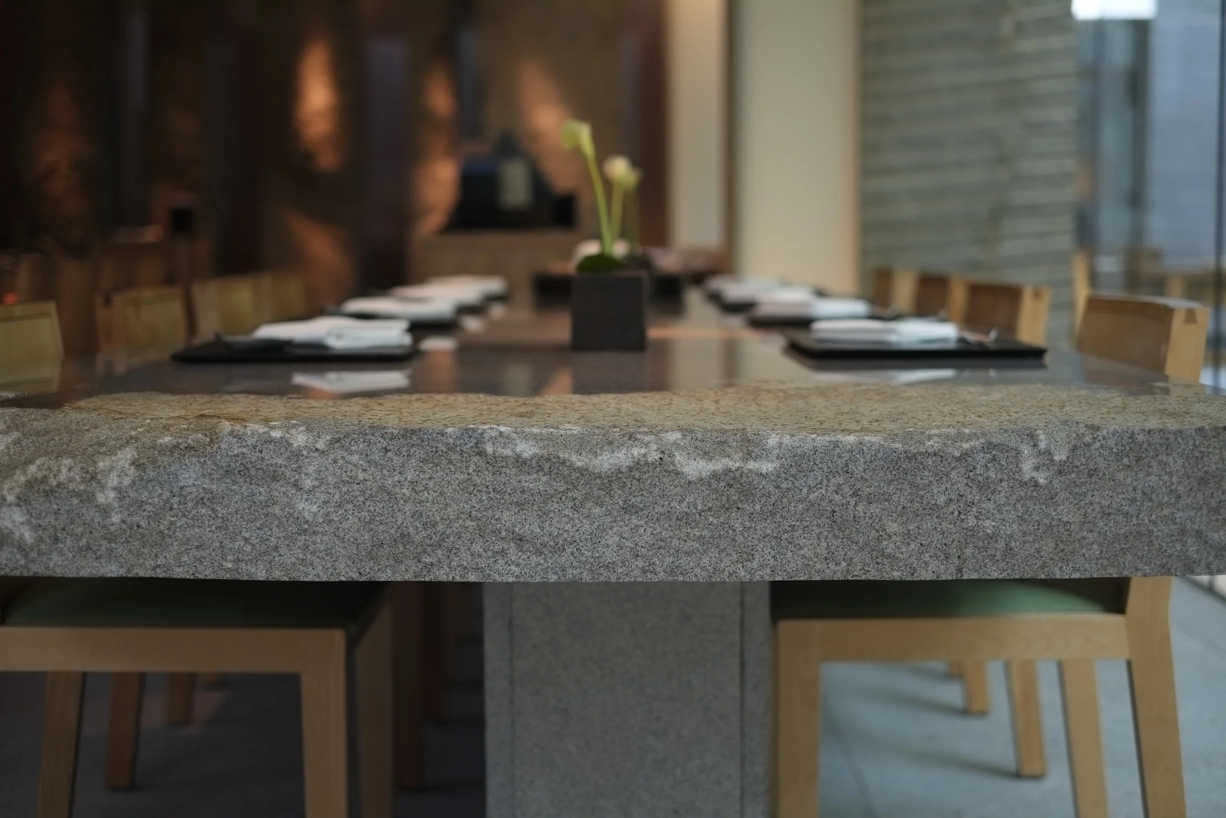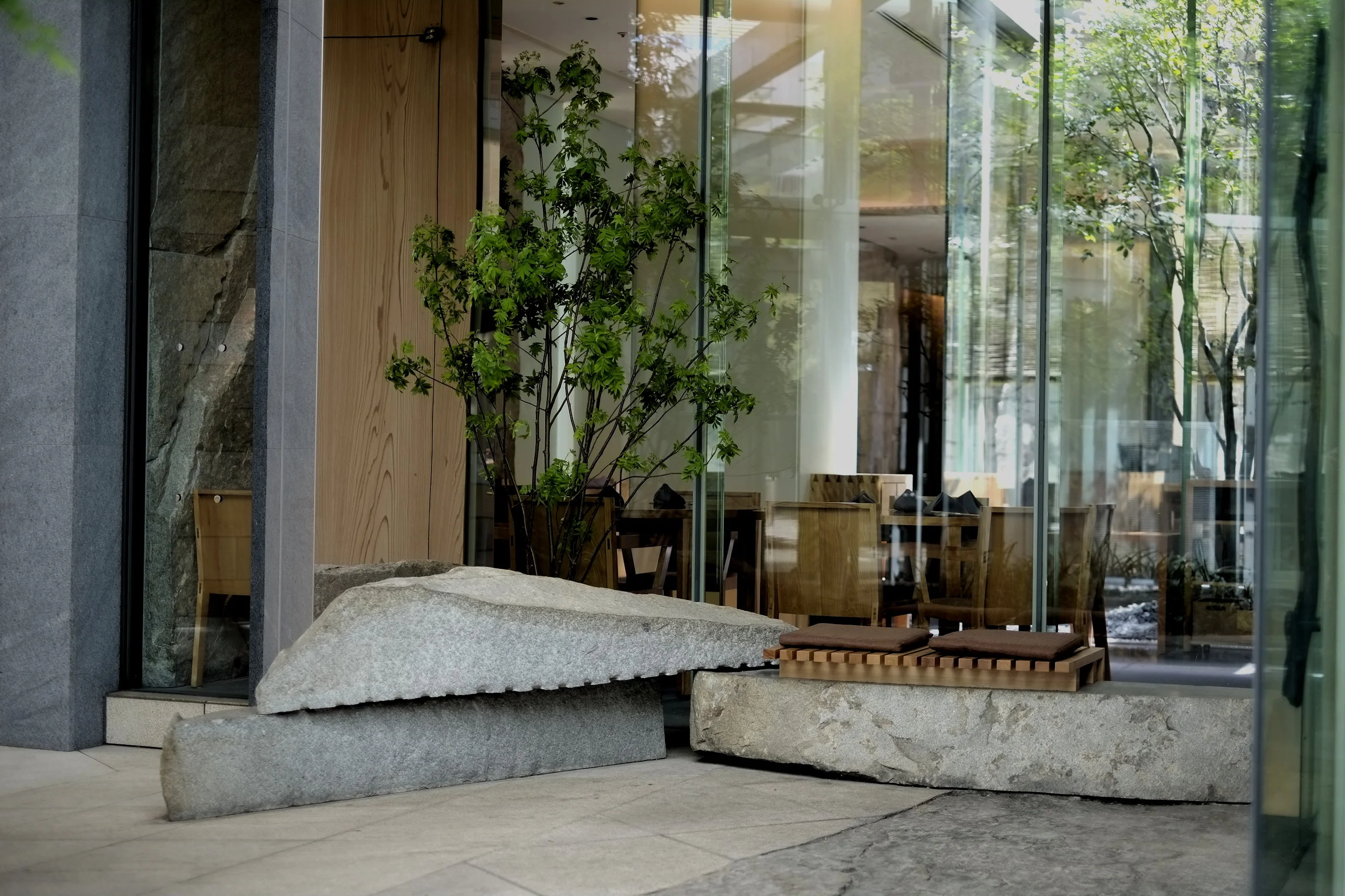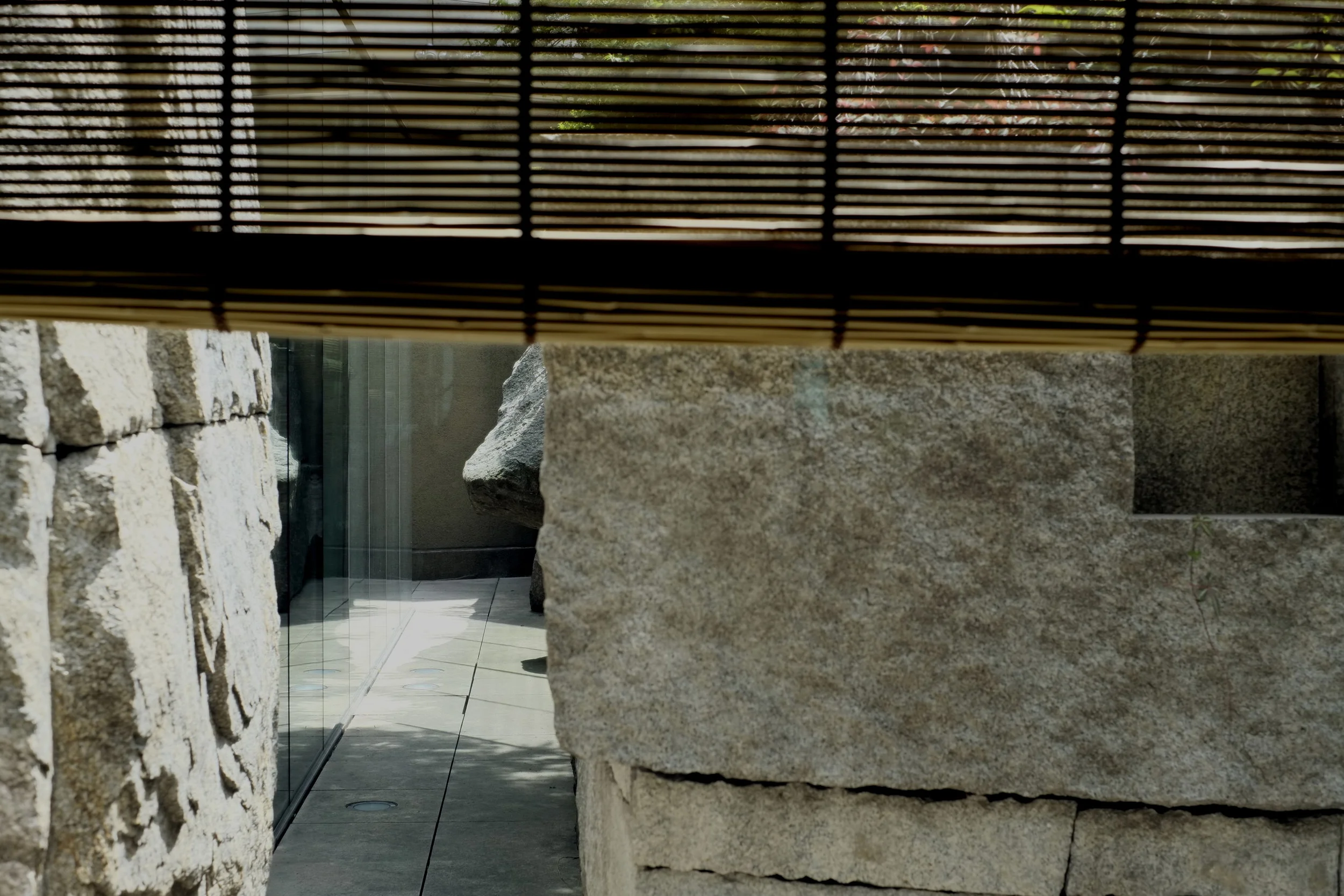 Frau Ikeda vom Noguchi Garden Museum in Japan hat mir ganz total lieber Weise eine Tokyo-Liste gesendet wo alle Werke von Noguchi und seinem späten Freund und Arbeitspartner IZUMI MASATOSHI aufgeführt sind. Ich picke mir das Grand Hyatt in Shinjuku heraus, wo Izumi eine Etage mit 2 Restaurants förmlich in Stein gekleidet hat. Mir fehlen die Worte, das ist sicherlich das Sinnlichste und Wunderbarste was man aus einem Restaurant machen kann. So langsam beginne ich zu verstehen wie lebendig Steine sind und was sie auszudrücken vermögen. Allerdings sind es hier nicht nur die Steine die mich begeistern, das ganze Ensemble ist perfekt-imperfekt ausbalanciert und ich signalisiere dem sehr freundlichen Personal, dass ich beim nächsten Besuch mit viel Geld in der Tasche wiederkomme um die vielen, gut aussehenden Speisen auch mal probieren zu können.