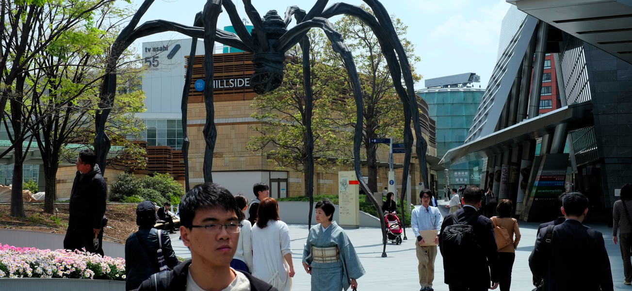 In der Nachbarschaft vom Hotel befindet sich die neue selbsternannte schicke kulturelle Mitte der Stadt: Roppongi Hills mit dem Mori Tower. Am Boden kriecht ein Ungeheuer auf die Laufkundschaft zu. Eine Riessenspinne von Louise Bourgeois stört den Kauf- und Laufrausch der Konsumenten auf angenehm hässliche Art.